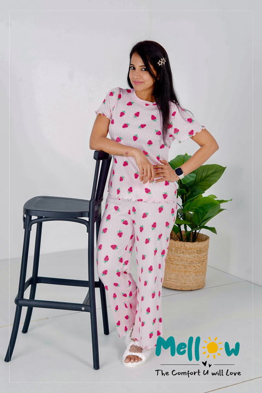 Baby Pink and Black Flower Print Co-Ord Lounge Wear