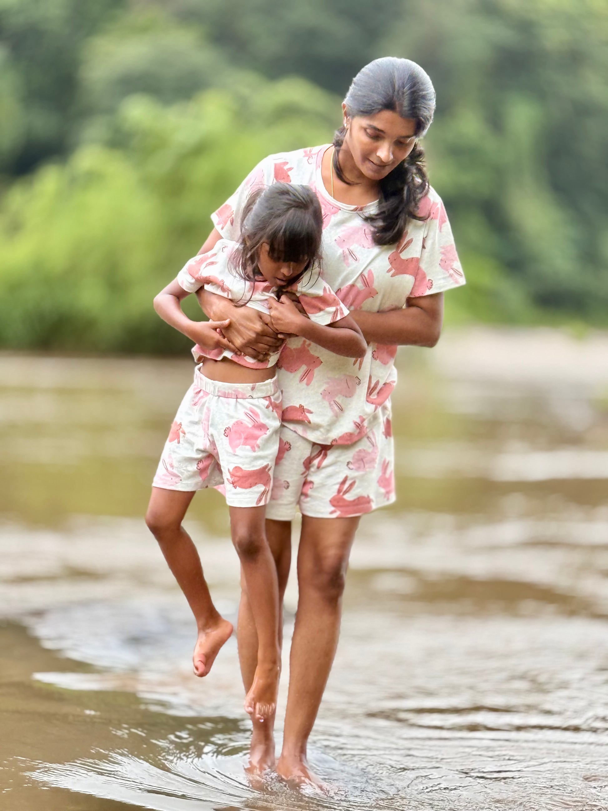 Introduce your child to stylish and comfortable fashion with our Rabbit Co-Ord set. Made with top-tier materials, this set features a charming rabbit design that kids will love. Plus, mom can join in on the fun with our matching twinning option. Upgrade your family's wardrobe with our high-quality co-ord sets.